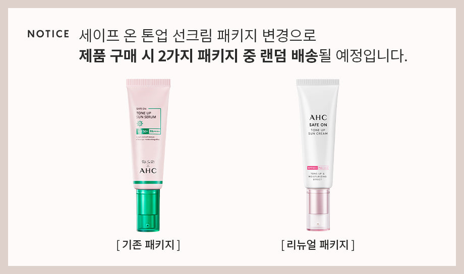 Due to the change of the Safe On Tone Up Sun Cream package, when purchasing the product, it will be shipped randomly among the two packages.