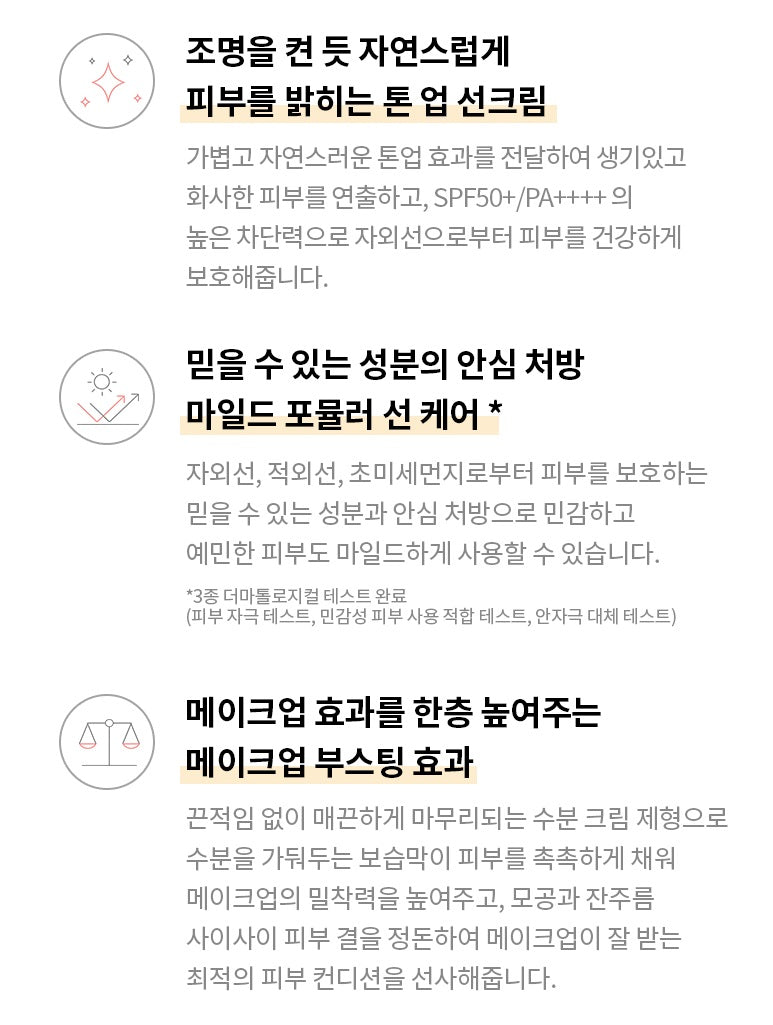 It delivers a light and natural tone-up effect to create lively and bright skin, and protects the skin from UV rays with high blocking power of SPF50 + / PA ++++.