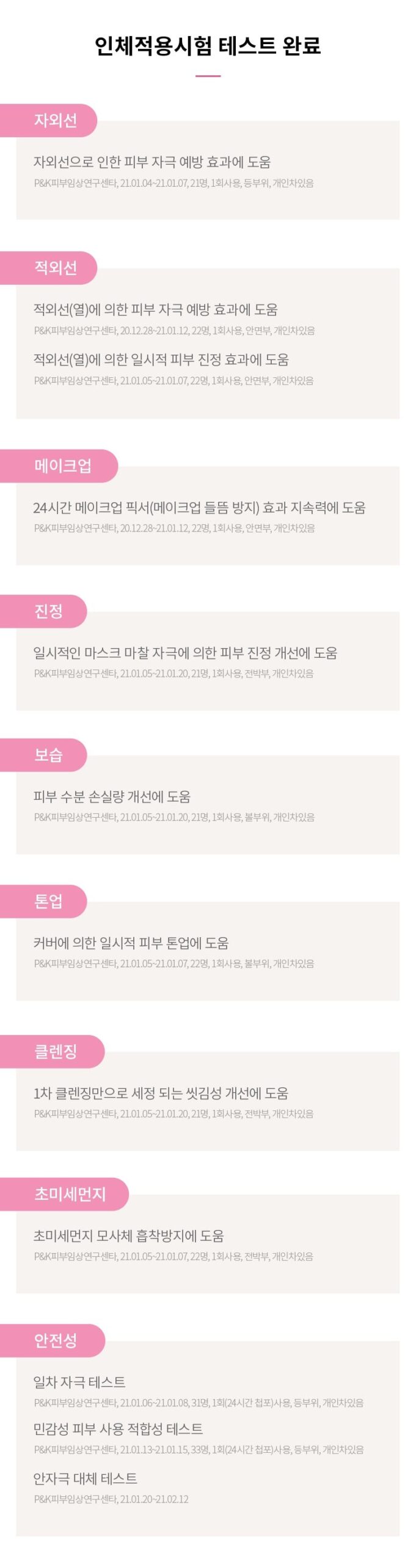 (Skin Irritation Test, Sensitive Skin Appropriate Test, Eye Irritation Alternative Test)
