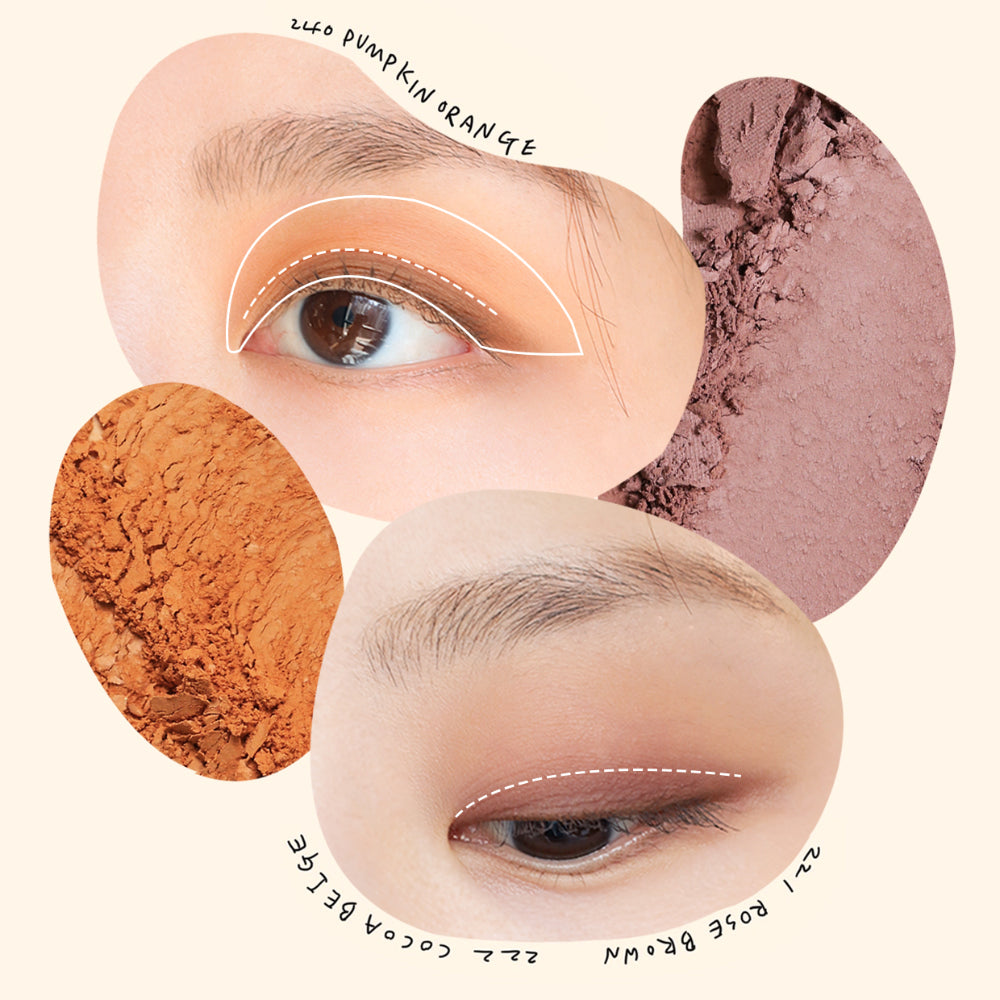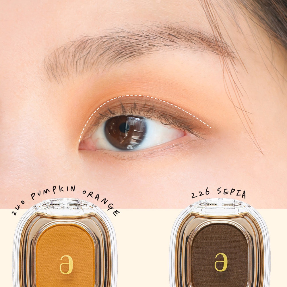 Just apply 240 Pumpkin Orange, a toned-down orange color mixed with brown, all over the eyelids to create a subtle charm that does not pop out.