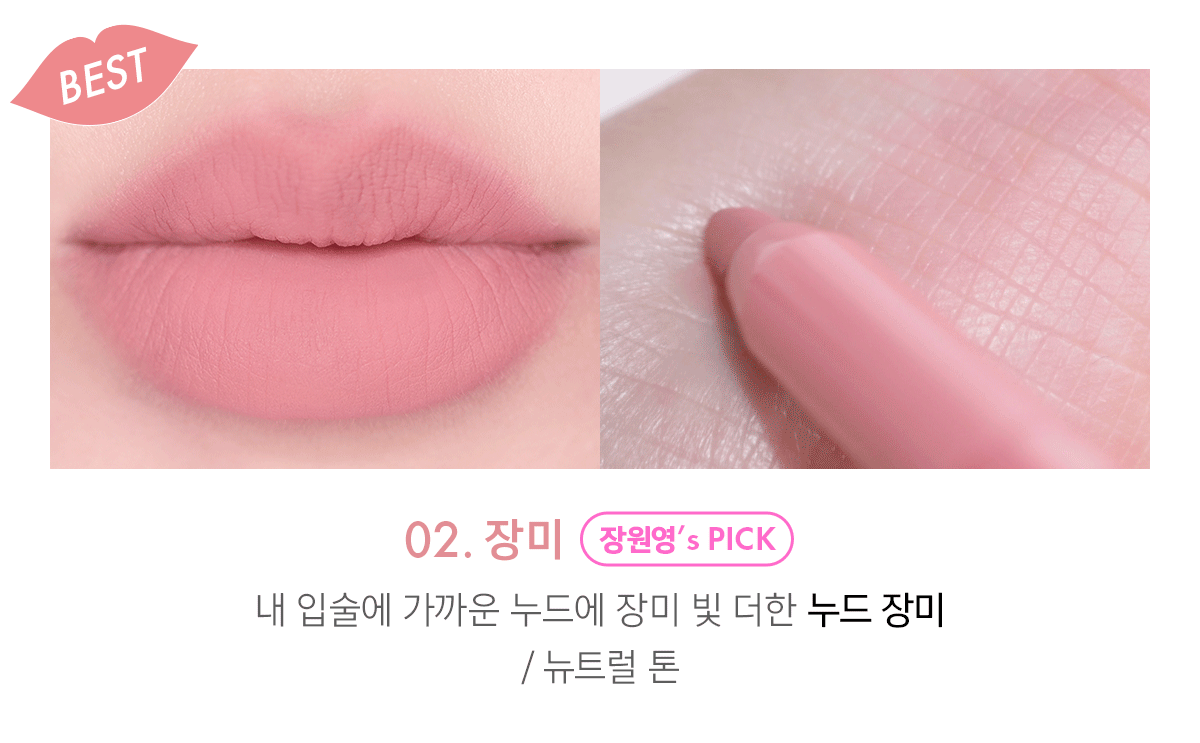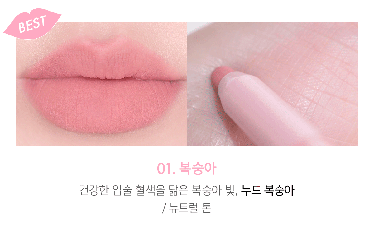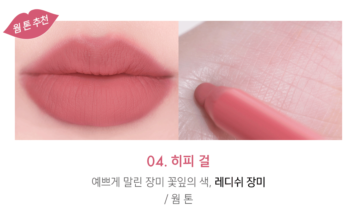 A long-lasting & smudging overlap lip pencil that applies smoothly and adheres tightly to overlips, natural shades, and even cheeks.