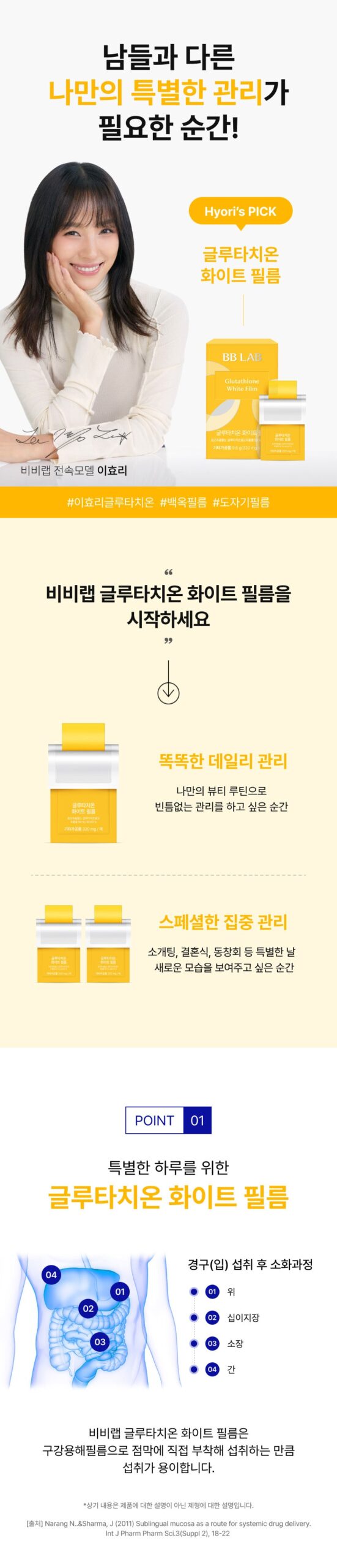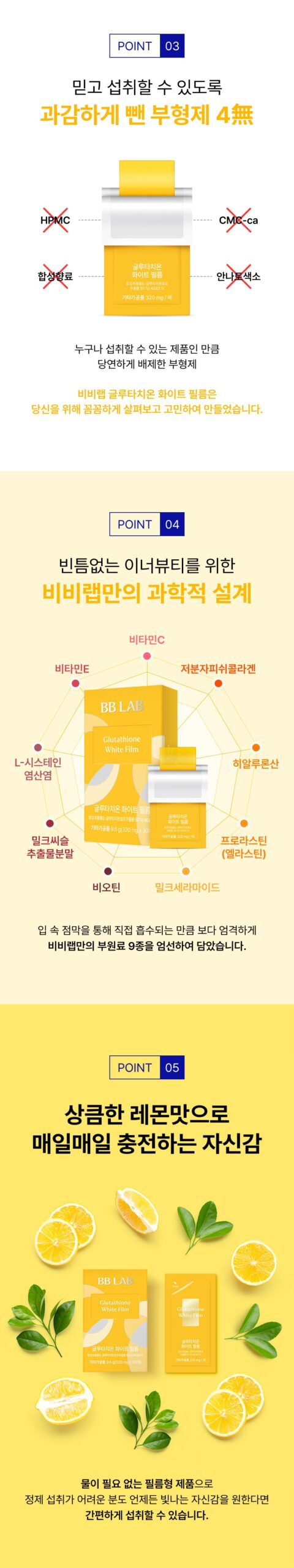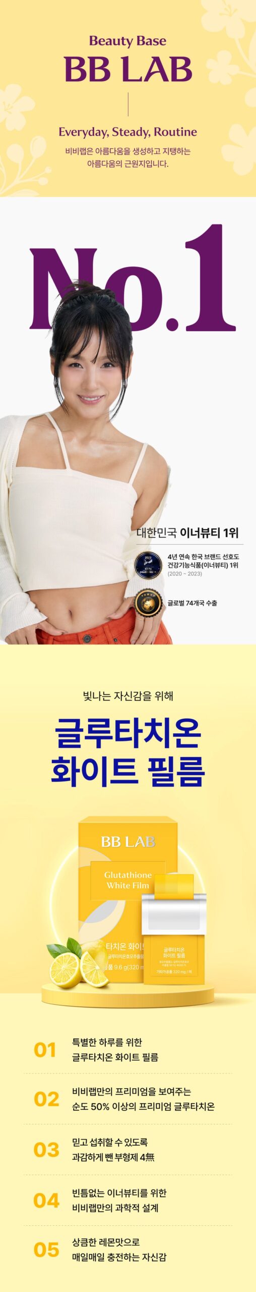 Elevate your daily routine with the delightful lemon flavor of BB Lab’s film. Its water-free, film-type form is ideal for those who find tablet consumption challenging.