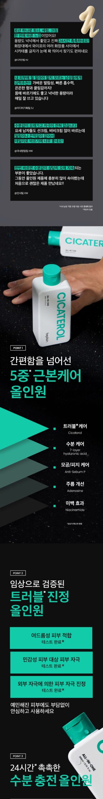 Using the beplain Cicaterol Men’s All-in-one has transformed my skincare routine. The product combines moisture care with pore refinement, which was perfect for my oily skin. I especially appreciate how it provides long-lasting hydration without a greasy finish; my face feels smooth and shine-free throughout the day. After workouts, this formula soothes any irritation from sweat or heat effectively, making recovery quick and comfortable. It’s gentle enough that I’ve experienced zero breakouts despite its multi-functional benefits.
