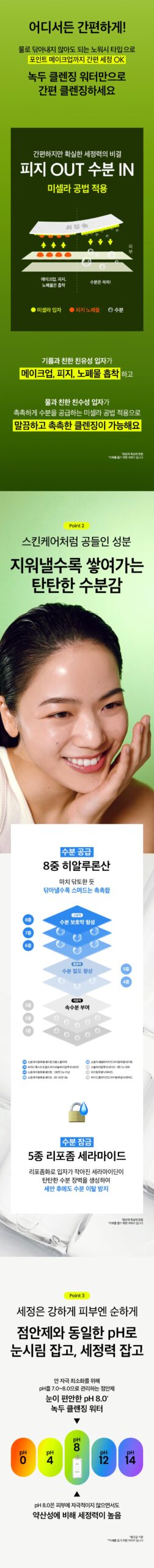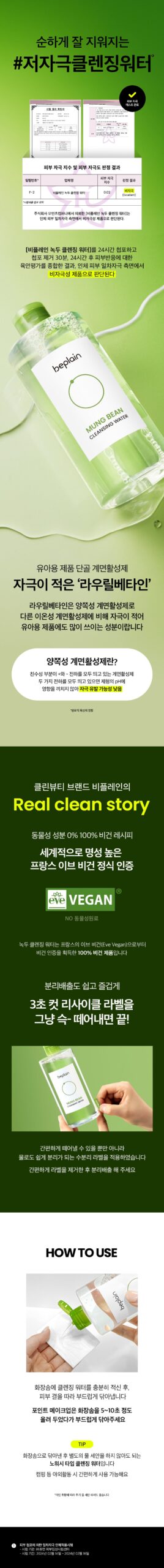 - Deep Pore Cleansing: Formulated with Korean mung bean extract, known for its excellent pore-cleansing properties, this cleansing water penetrates deeply to remove impurities.