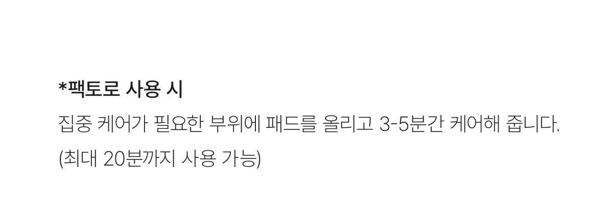 - As a Pack Toner: Place the pad on areas needing extra care and leave it on for 3 to 5 minutes. For more intensive treatment, it can be left on for up to 20 minutes.