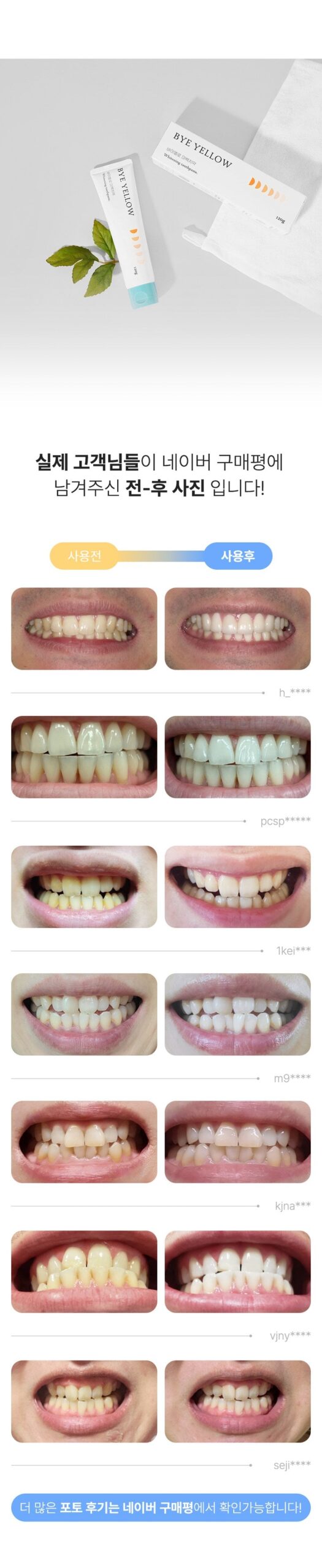 これ、マジで感動的な歯磨き粉だよ!BYE YELLOWを使い始めてから、自分の笑顔に自信が持てるようになった。とてもさっぱりするし、色んな食べ物や飲み物のシミもすぐ落ちた感じ!しかも美白効果がちゃんと実感できるので、一日に何度でも使いたくなる。ほんとうにお勧めだし、お友達にもぜひ試してほしいな。