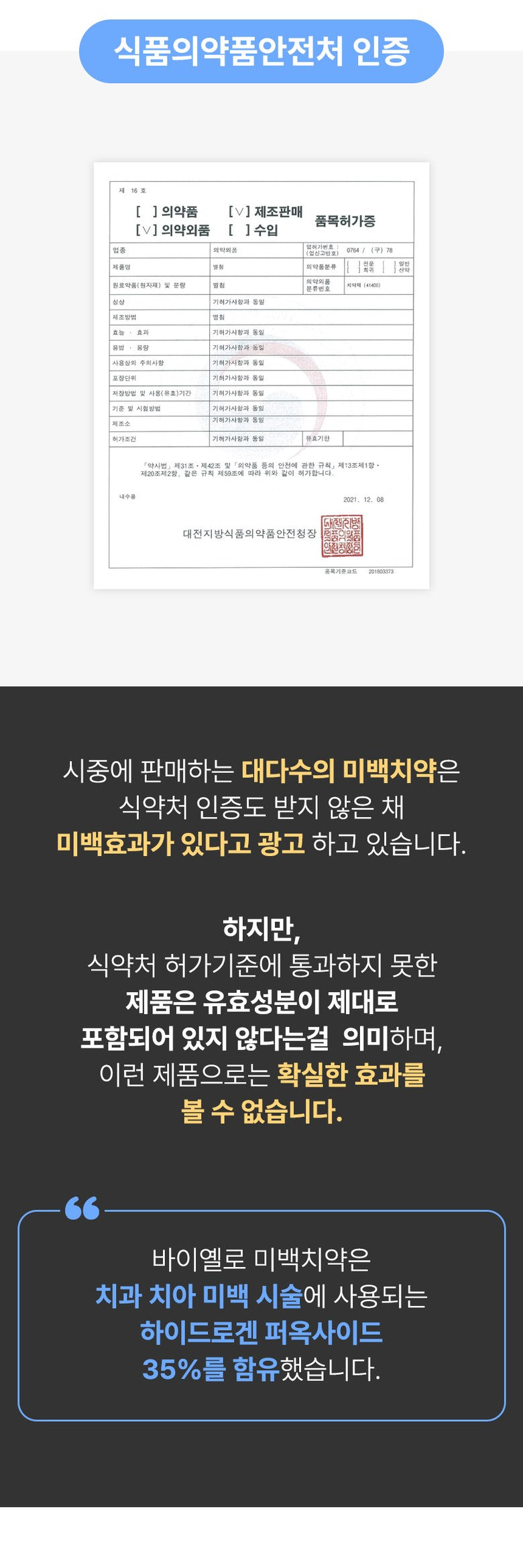 - Certified Teeth Whitening: Boasts a powerful 35% hydrogen peroxide content, certified by the Ministry of Food and Drug Safety for its remarkable whitening capabilities.