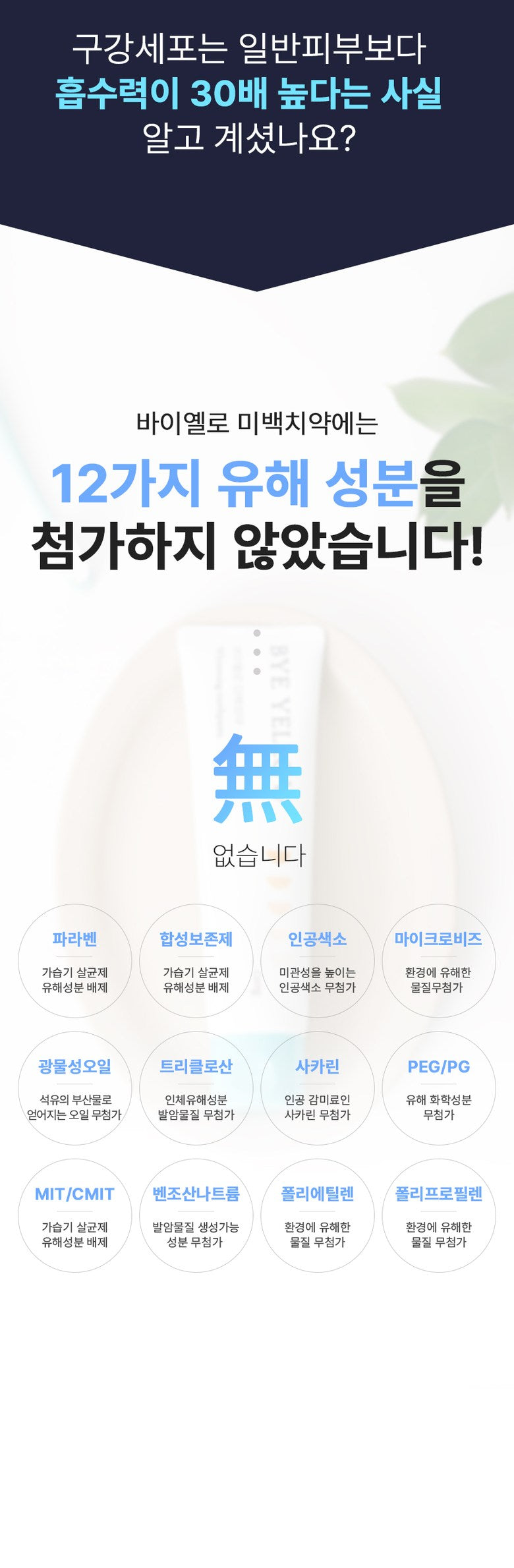 We prioritize your health by excluding 12 harmful additives commonly found in toothpaste, such as parabens, synthetic preservatives, artificial colorings, microbeads, mineral oil, triclosan, saccharin, PEG/PG, MIT/CMIT, sodium benzoate, polyethylene, and polypropylene.