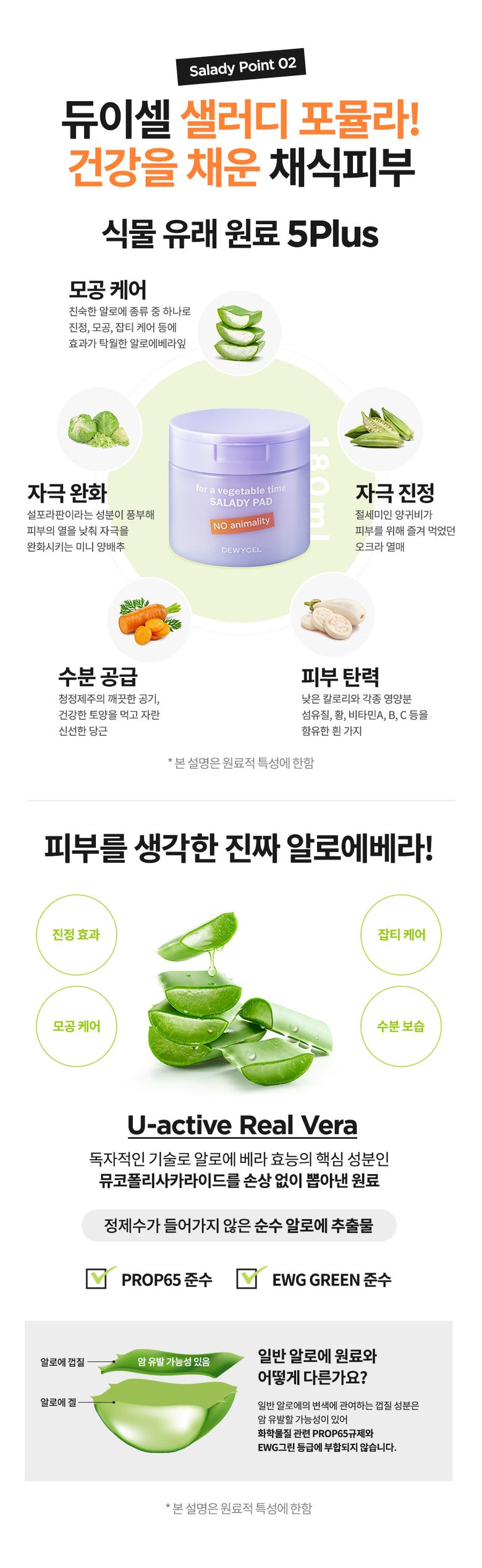 Using the DEWYCEL Salad Pads has been a game changer for my skincare routine. The combination of aloe vera leaf extract and mini cabbages really caught my attention, as these ingredients are known to refine pores and soothe irritated skin. After just a week of using these exfoliating pads, I noticed my complexion was noticeably clearer and brighter. They effectively removed dead skin cells without causing any irritation, which is crucial for me since I have sensitive skin. Overall, they provide deep cleansing while keeping my face hydrated – truly impressive!