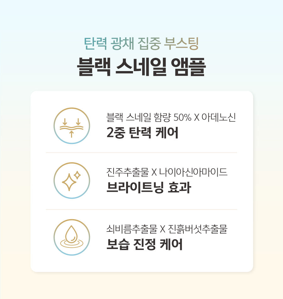 50% Black Snail Filtrate & Adenosine: This duo works synergistically to enhance skin elasticity, leveraging the resilience and nutrient-rich properties of black snail for firm, supple skin. Black snail’s ability to hibernate for up to six months, surviving harsh conditions, is harnessed to deliver unparalleled moisture and resilience.
