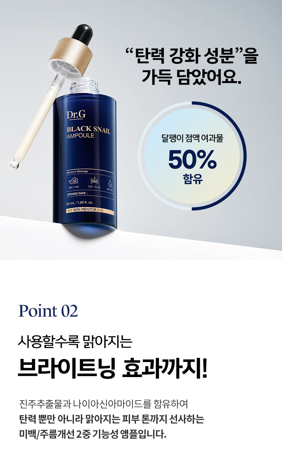 Packed with 50% snail mucin filtrate, the Dr.G Black Snail Ampoule delivers a significant boost in skin firmness and elasticity. The collagen-rich content deeply penetrates the skin, offering lasting hydration and resilience.