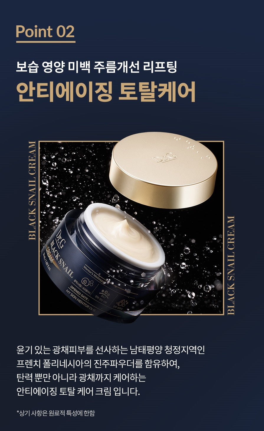 Black Snail strong nutrition increase skin elasticity and texture, prevents moisture loss.Elastic texture supply rich nutrition perfectly.