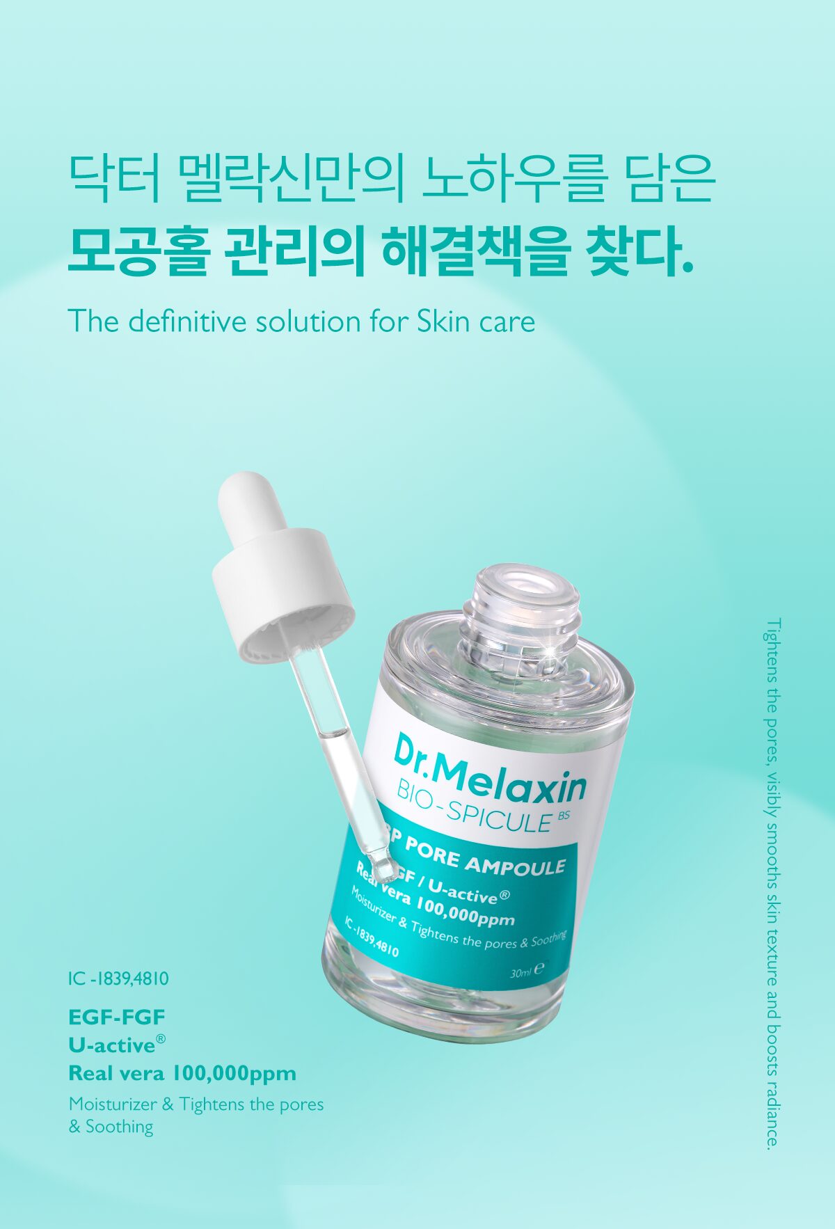 Experience revolutionary pore care with the Dr. Melaxin BIO-SPICULE BP Pore Ampoule, designed to visibly improve pore density and size with just one use.