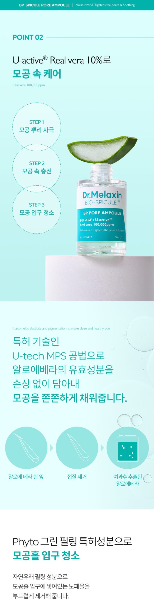 - STEP 03: Apply the BP Spicule Pore Ampoule with the dropper and press lightly to enhance absorption.