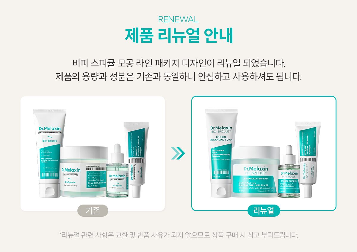 The packaging of the BP Spicule Pore line has been updated for a refreshed look. Rest assured, the product’s formula and volume remain unchanged.