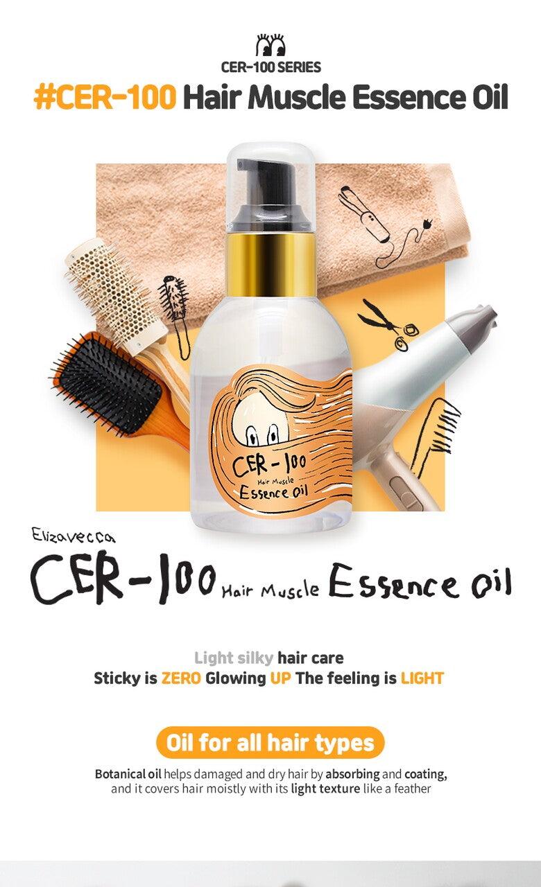 Experience the transformation of your hair with Elizavecca Hair Muscle Essence Oil CER-100, giving you the ultimate in hair care and shine.
