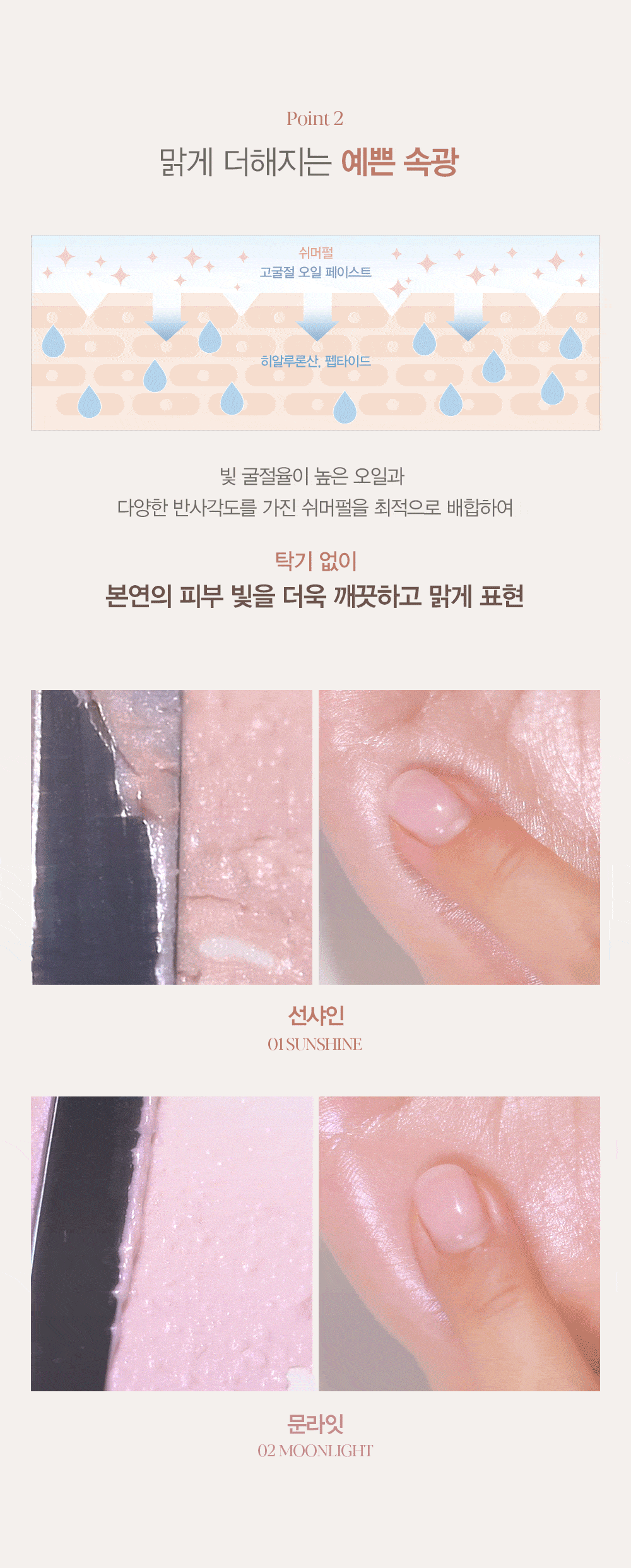 Moonlight: Perfect for cool skin tones, this shade offers a whitish pink hue that provides a two-tone-up effect, resembling the sparkling glow of moonlight.