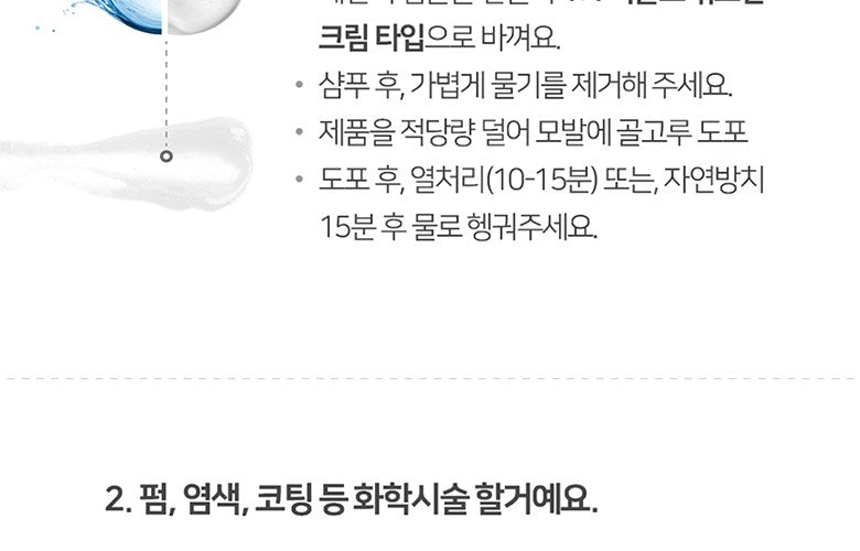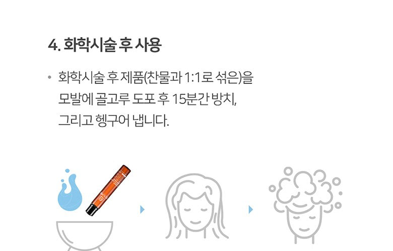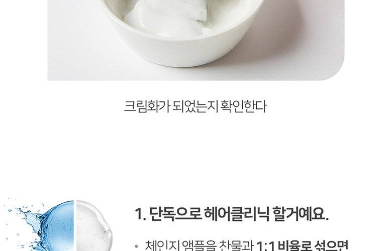 - Hair Clinic at Home: Mix the ampoule with cold water in a 1:1 ratio for a cream-type application after shampooing. Heat treat or leave naturally before rinsing.