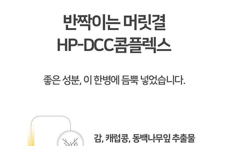 - HP-DCC Complex: A combination of persimmon, carob bean, and camellia leaf extract to deeply moisturize your hair.