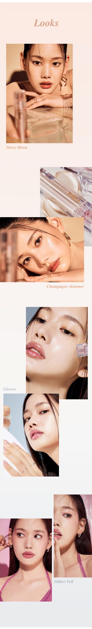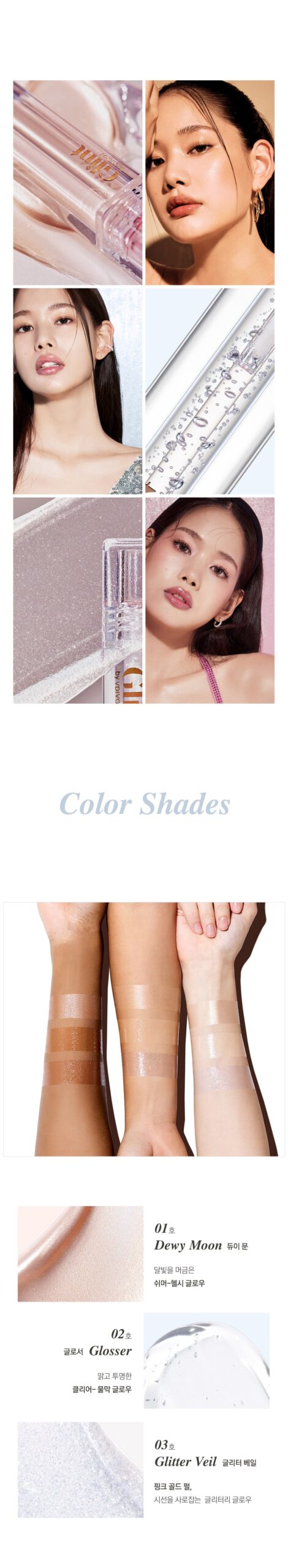 - No. 03 Glitter Veil: Pink gold pearl for an eye-catching glitter glow.