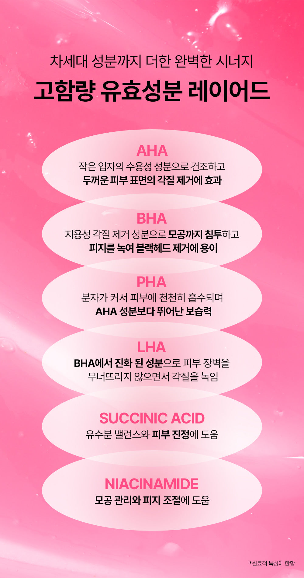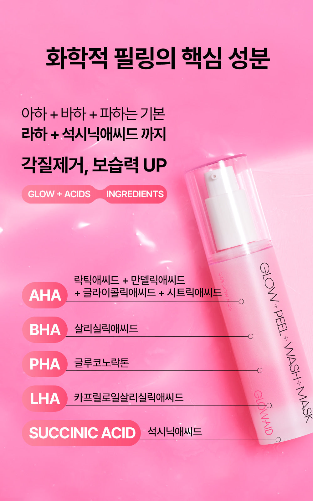 ✔ AHA + BHA + PHA + LHA + Succinic Acid + Niacinamide blend