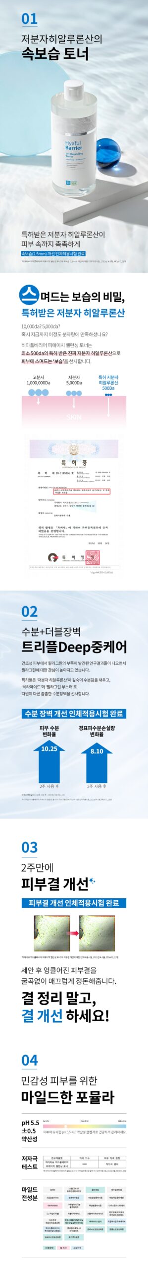 Experience the unique blend of hydration and skin rejuvenation with HADALABO Hiaful Barrier pH Balancing Toner. This formulation features the revolutionary ‘low-molecular-weight hyaluronic acid’ combined with ‘Jeju young green barley extract’. This duo works synergistically to deeply moisturize from within, ensuring your skin remains hydrated and supple.