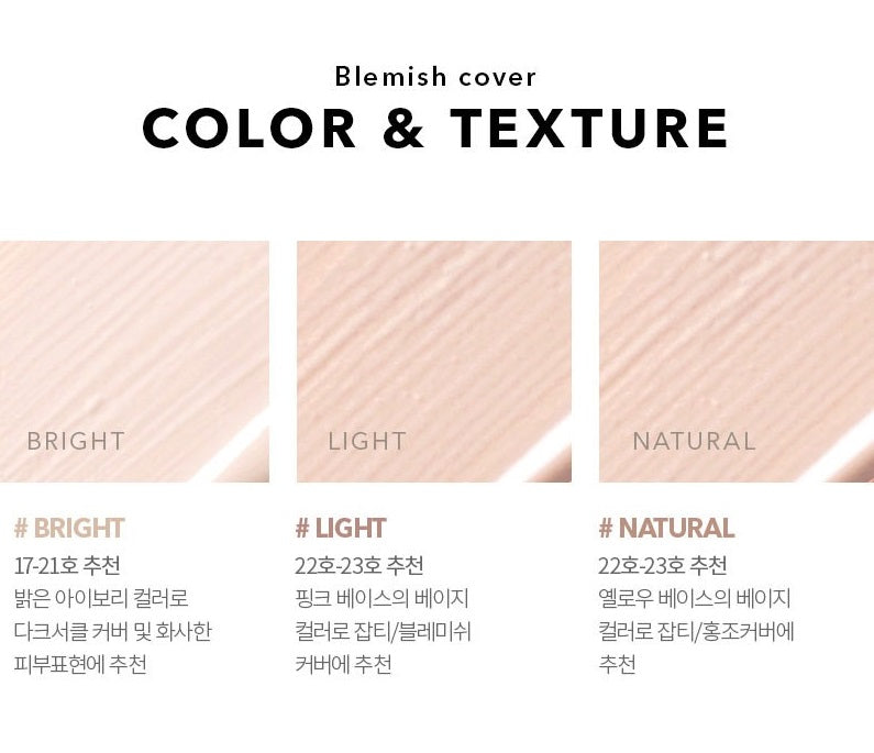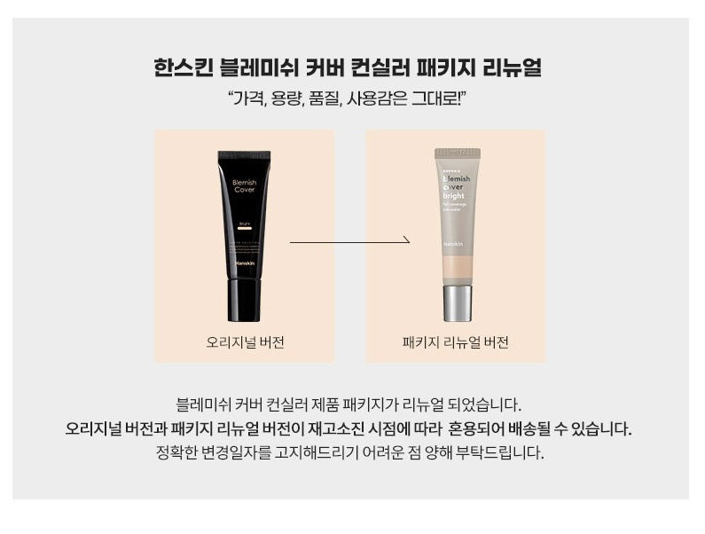 The Blemish Cover Concealer product package has been renewed. The original version and the package renewal version may be mixed and shipped depending on when the stock is exhausted.