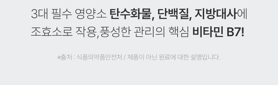 This product contains 2,600% of Vitamin B7 and Biotin, which act as coenzymes for the metabolism of three essential nutrients, carbohydrates, proteins, and fats.