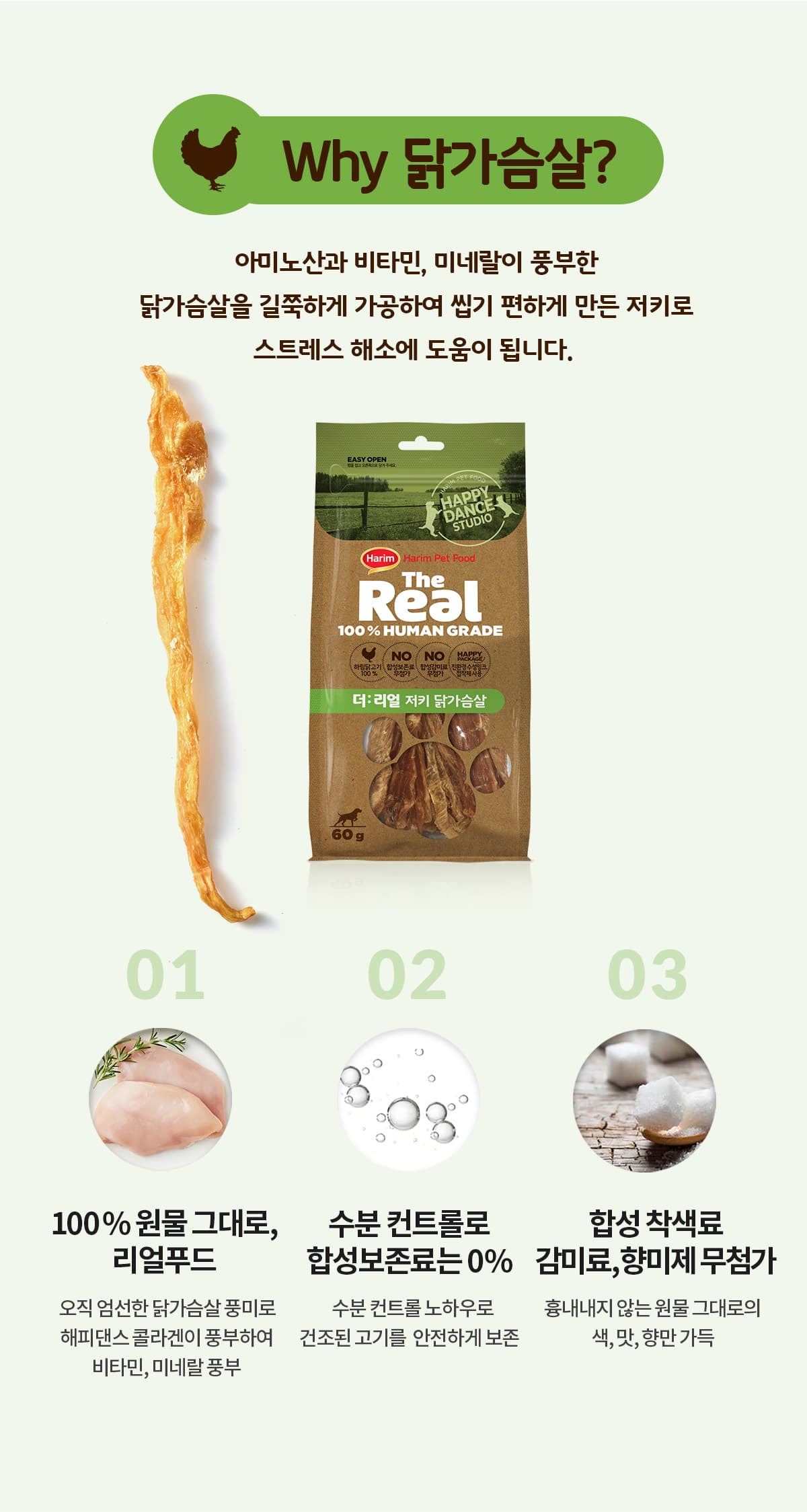 - 100% Real Ingredients: Only the best chicken breast is used, rich in Happy Dance collagen and abundant in vitamins and minerals.
