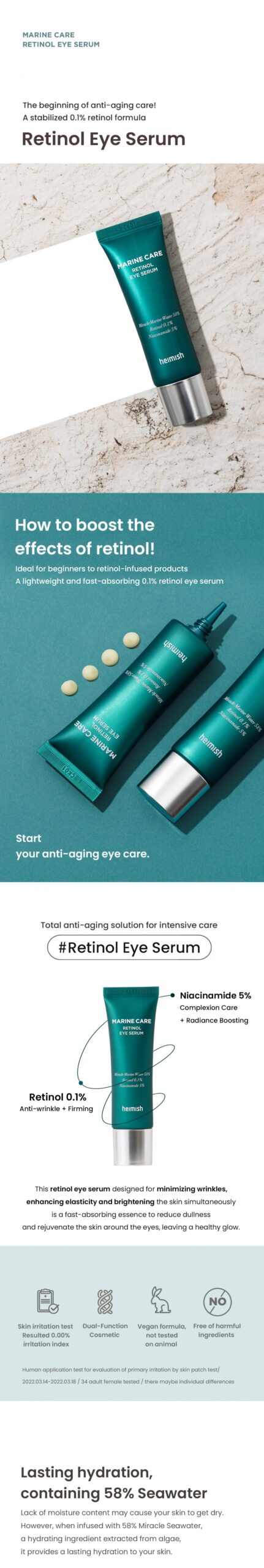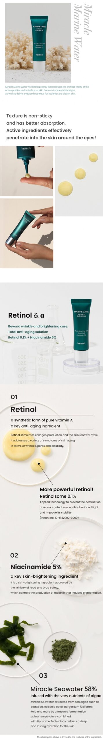 As someone who’s tried a plethora of eye serums in hopes of fighting the inevitable signs of aging, I was rather skeptical when first introduced to Heimish Marine Care Retinol Eye Serum. Yet, it stands apart due to its rich texture and ocean-derived ingredients like fermented seaweed extract that genuinely seem rejuvenating upon application. The unique roller ball provides not just cool relief but also helps penetrate the formula deeper into fine lines that plague me so often.