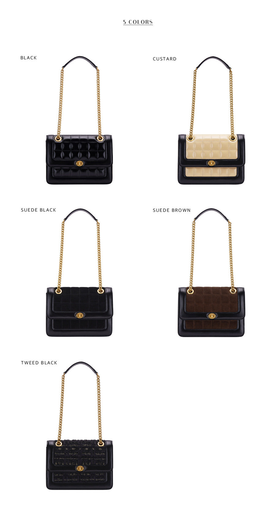 - Flap bag (with fixed chain strap)