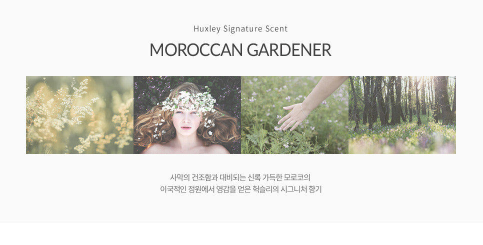 Huxley’s signature scent inspired by the exotic gardens of Morocco, full of verdant contrasts with the dryness of the desert.