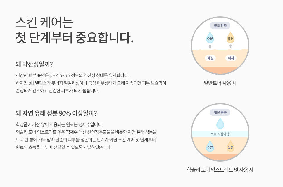 A healthy skin surface maintains a slightly acidic pH of 4.5 to 6.5. However, if the pH balance is broken and the skin condition is alkaline or neutral for a long time, the skin barrier is damaged and it is easy to become dry and sensitive skin.