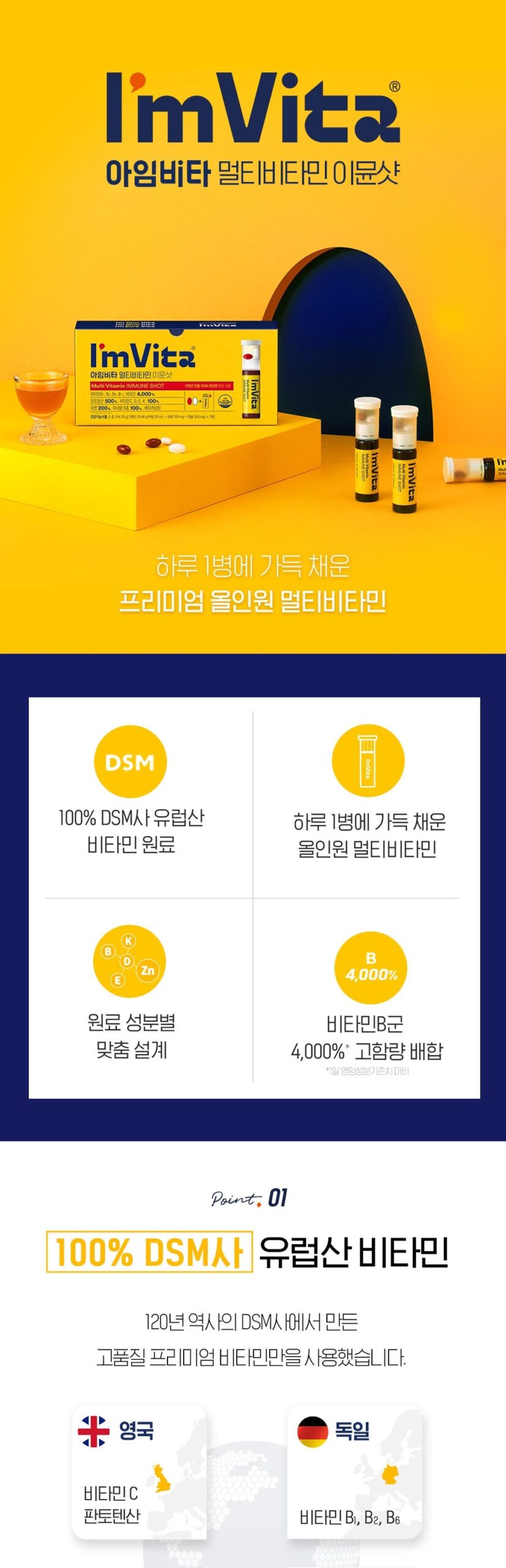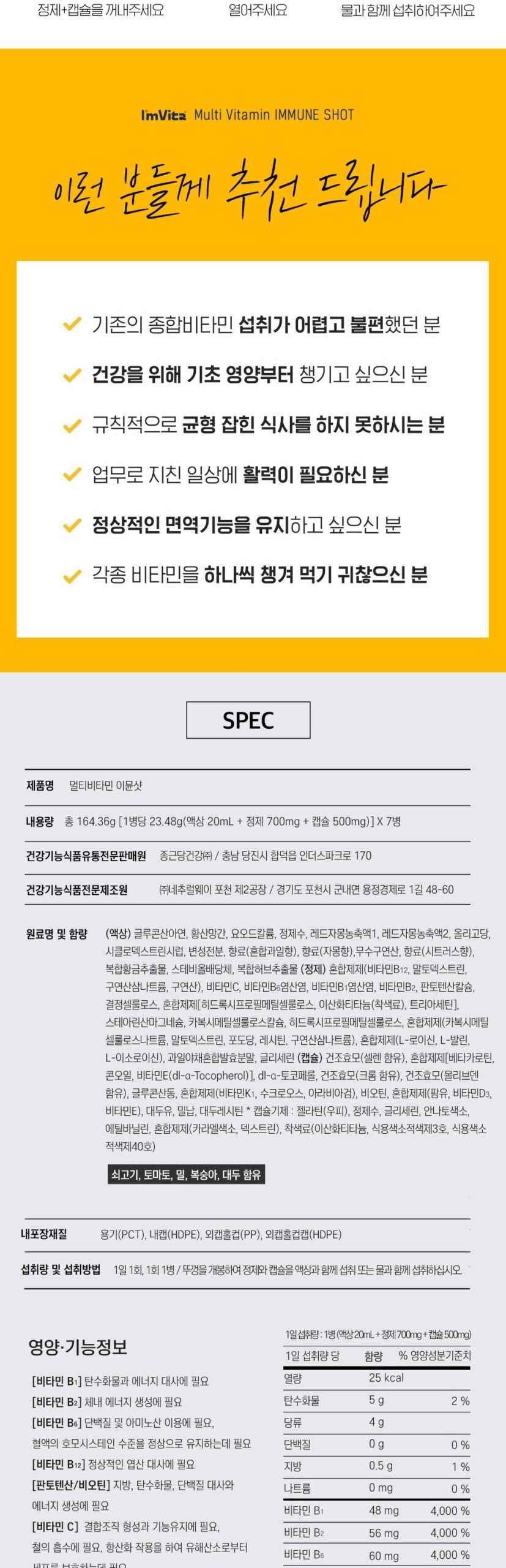 Vitamin B group is a water-soluble vitamin, so it is not stored in the body even if consumed in large quantities, and is discharged, so take the Multi Vitamin Immune Shot every day.