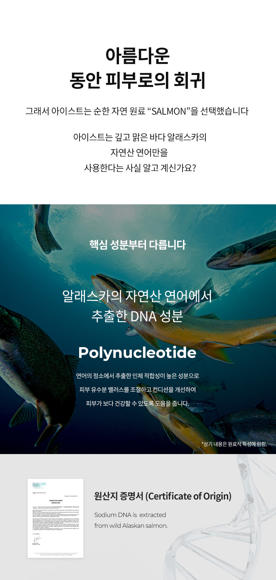 The mask incorporates DNA components extracted from wild salmon found in the pristine waters of Alaska. These are highly compatible with the human body, helping to regulate the skin’s oil and moisture balance while improving overall skin condition for a healthier, more youthful glow.