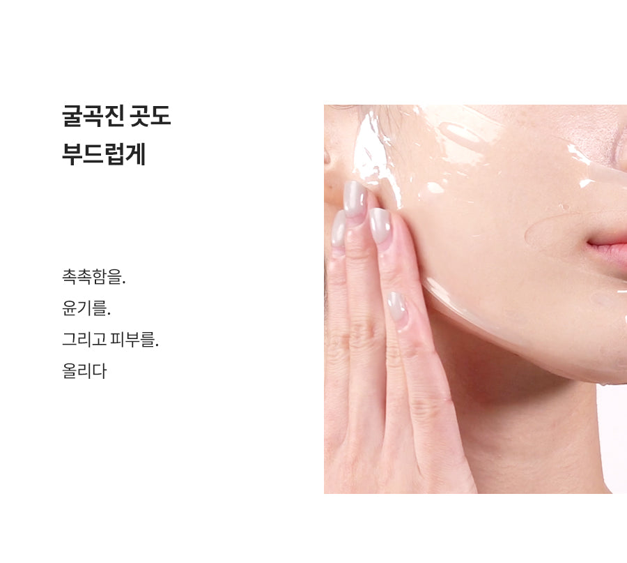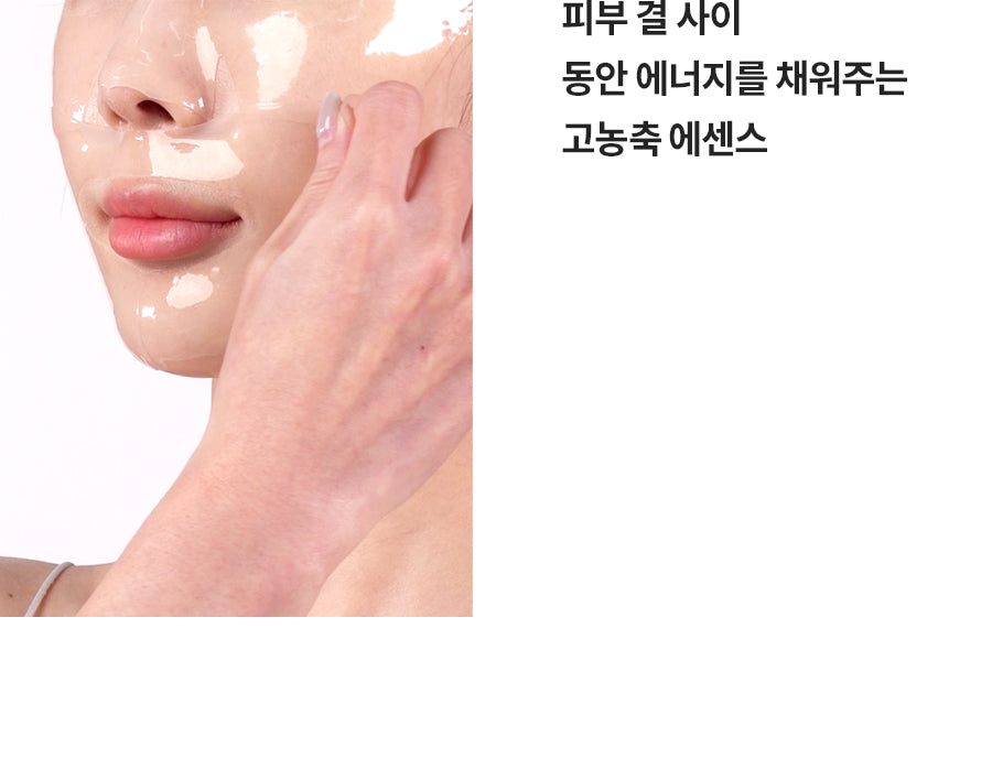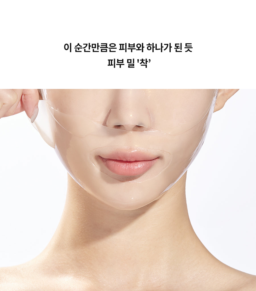 The upgraded sheet features an enlarged lower part and precise blade lines, allowing it to adhere seamlessly to all facial contours, even curved areas. This ensures thorough absorption of the highly concentrated essence into your skin.