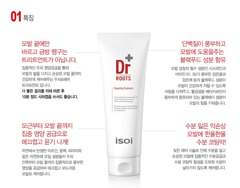 isoi Dr. Roots is a natural hairline created with a recipe made from natural ingredients, which can be used together from scalp ampoules to hair essence.
