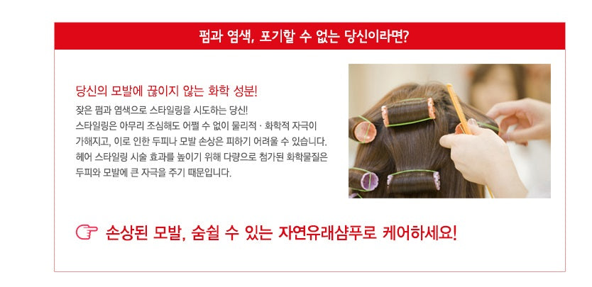 No matter how careful styling is, physical and chemical stimuli are inevitably applied, and it can be difficult to avoid damage to the scalp or hair. This is because chemical substances added in large amounts to enhance the effect of hair styling treatment greatly stimulate the scalp and hair.