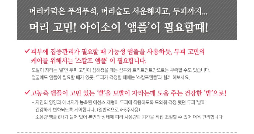 A highly-concentrated ampoule of Eosungcho+ Perilla leaf + Green tea gives powerful energy to a loose scalp!