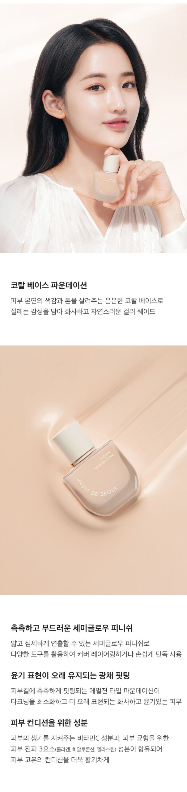 So, I just tried the JAVIN DE SEOUL Bloom Foundation, and let me tell you—it’s a total game-changer! The radiant coral base really does bring out my skin’s natural glow. I usually have trouble finding foundations that don’t look cakey or feel heavy on my face. This stuff is super light—like applying whipped cream rather than paint! Plus, it layers beautifully if you want to build up coverage for a night out or keep it fresh during the day at work. Seriously impressed with how long-lasting it is too; by lunchtime, I’m still looking fab without any touch-ups. Might be one of my new go-tos for sure!