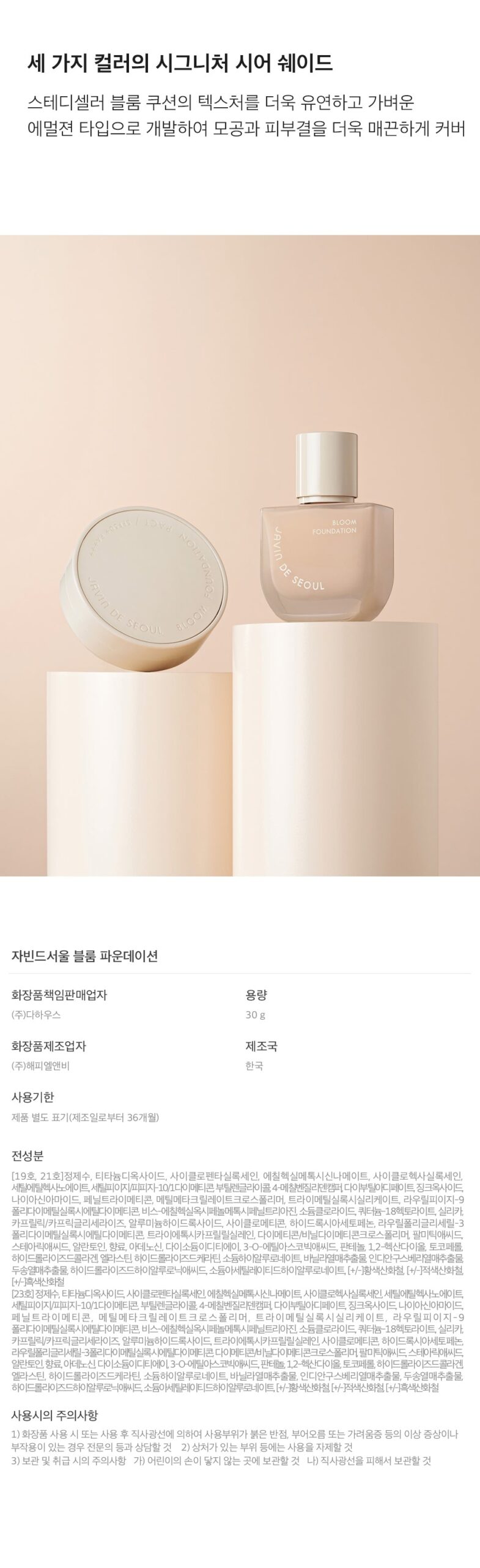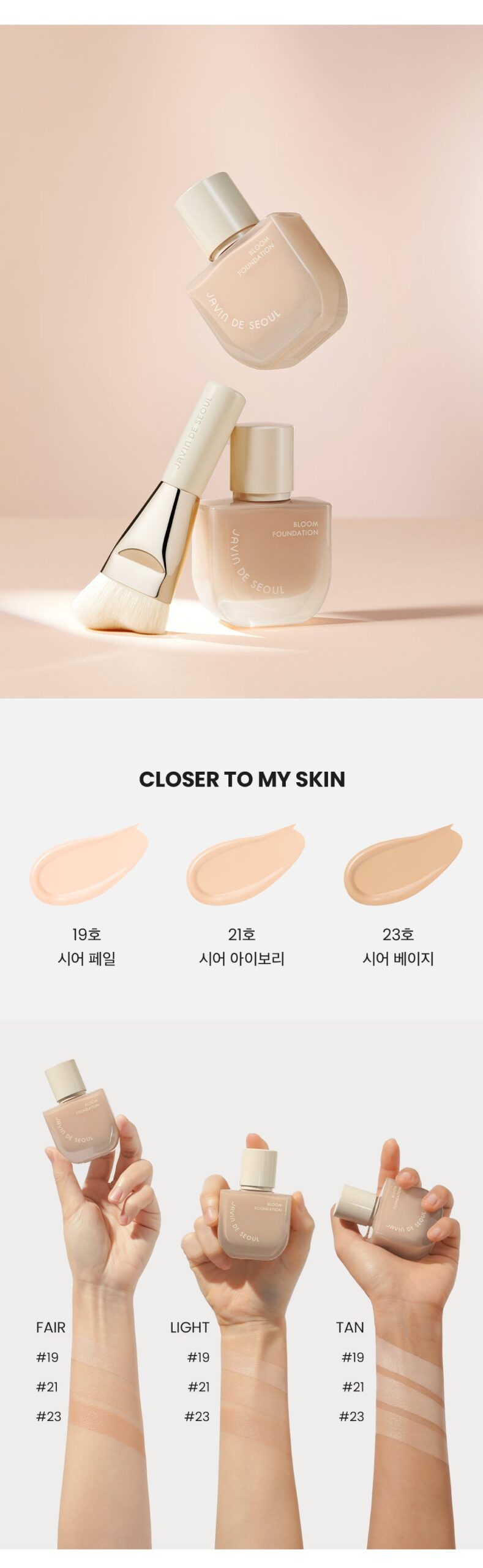 JAVIN DE SEOUL understands the diversity of skin tones and offers the Bloom Foundation in three distinct shades: