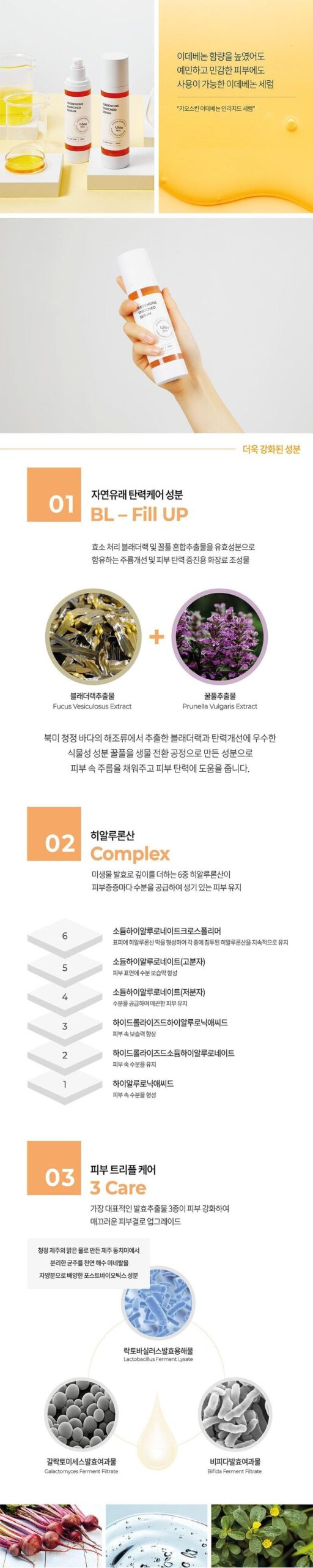 Fucus vesiculosus extract, extracted from clean seaweed, and Prunella Vulgaris Extract, a vegetable ingredient excellent for improving elasticity, are patented ingredients made through an eco-friendly biological conversion process to fill wrinkles in the skin and help improve skin elasticity.