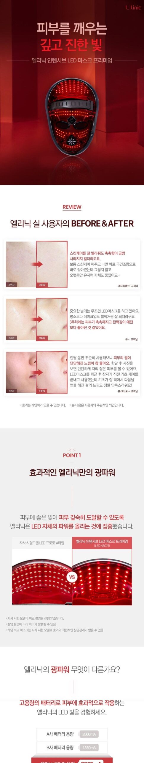 - L.LINIC’s Optical Power: Employs 480 LEDs focused on delivering skin-friendly light deep into the skin, supported by a high-capacity 3350mA battery for simultaneous, powerful, and effective action.