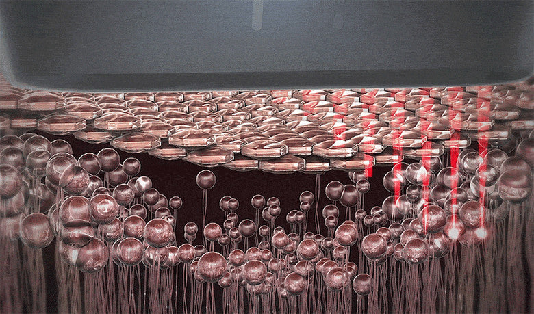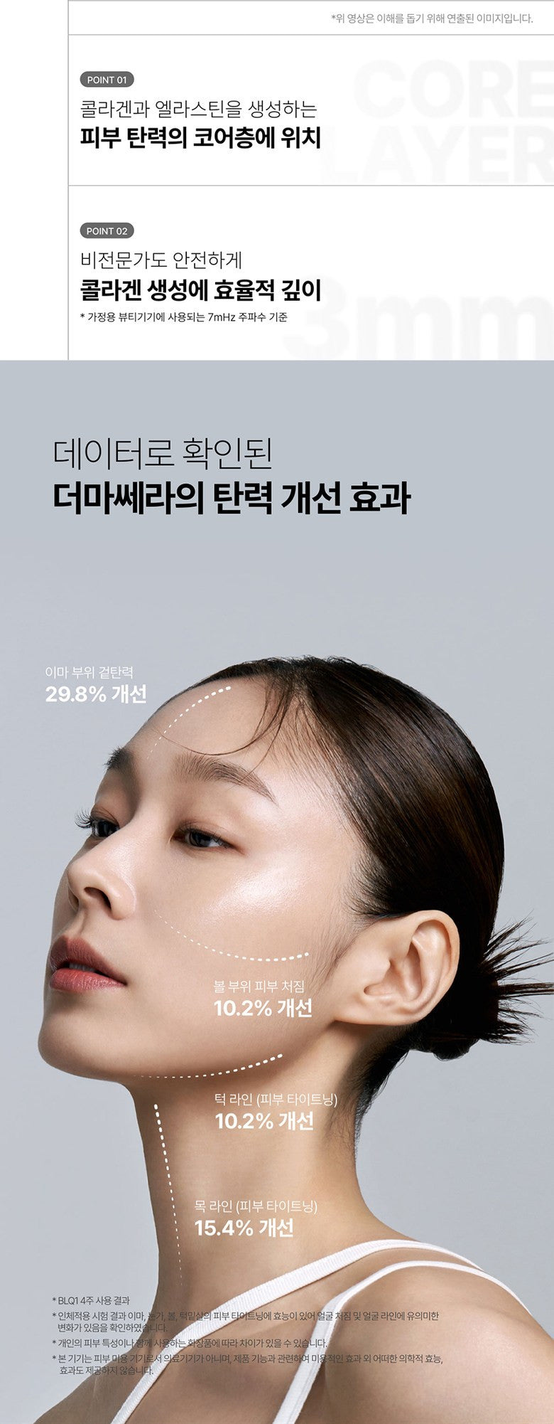 Helps produce collagen and elastin by stimulating the 3mm elastic core layer inside the skin.