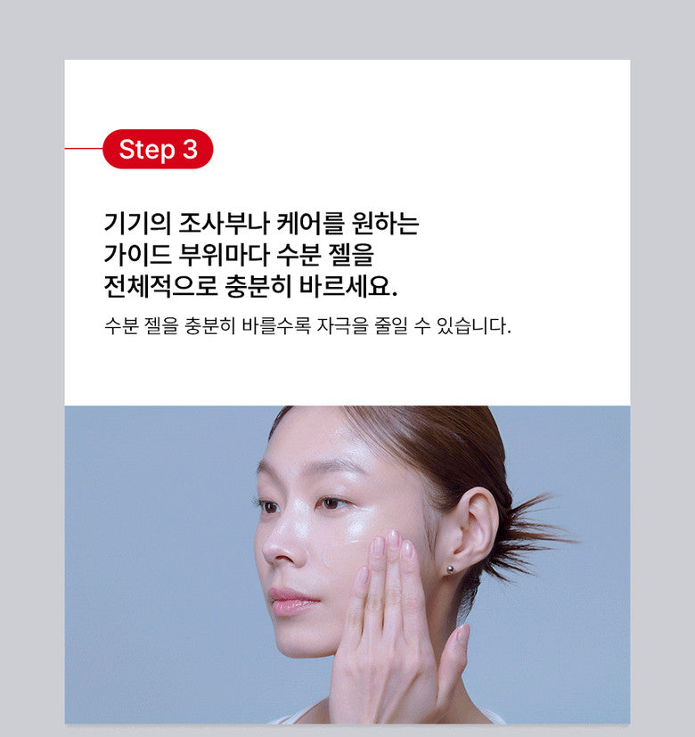 Apply a generous amount of moisturizing gel to the irradiated area of the device or to each guide area you want to care for.