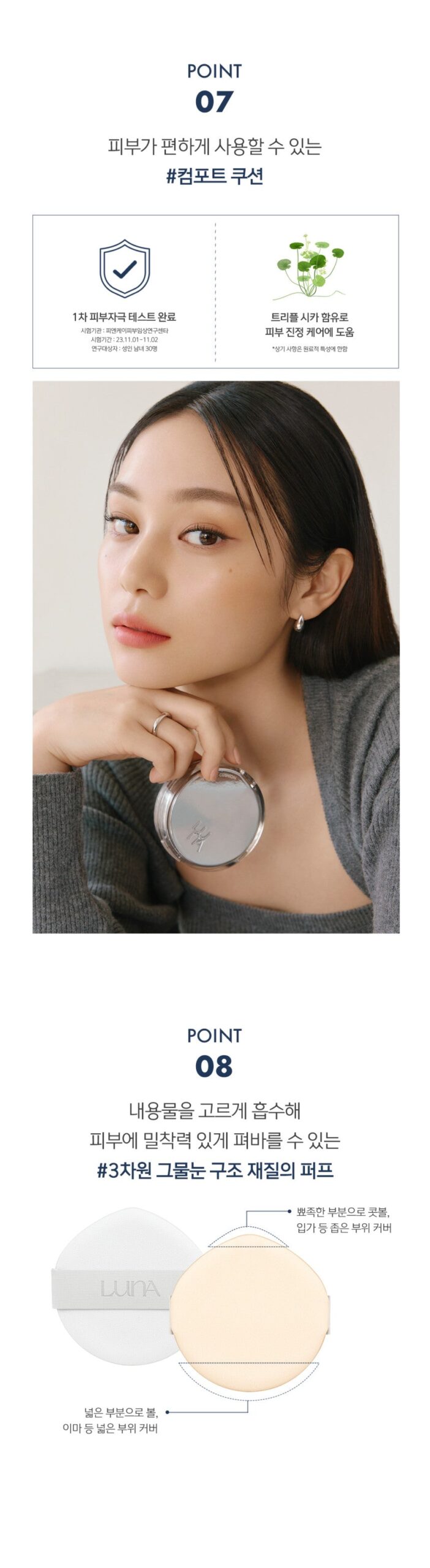 En un mundo donde la imperfección reina, LUNA logra maravillas con su Cushion. Se siente casi como una segunda piel; la cobertura es a la vez ligera y duradera, haciendo que incluso mis cicatrices se desvanecen tras su aplicación.