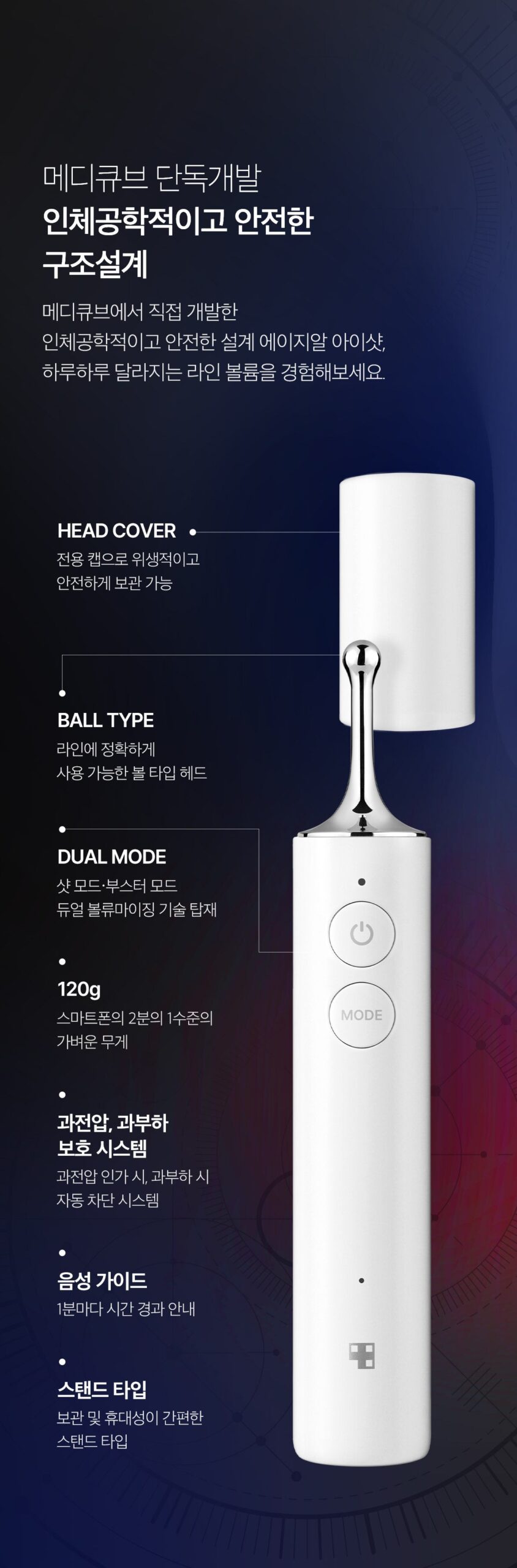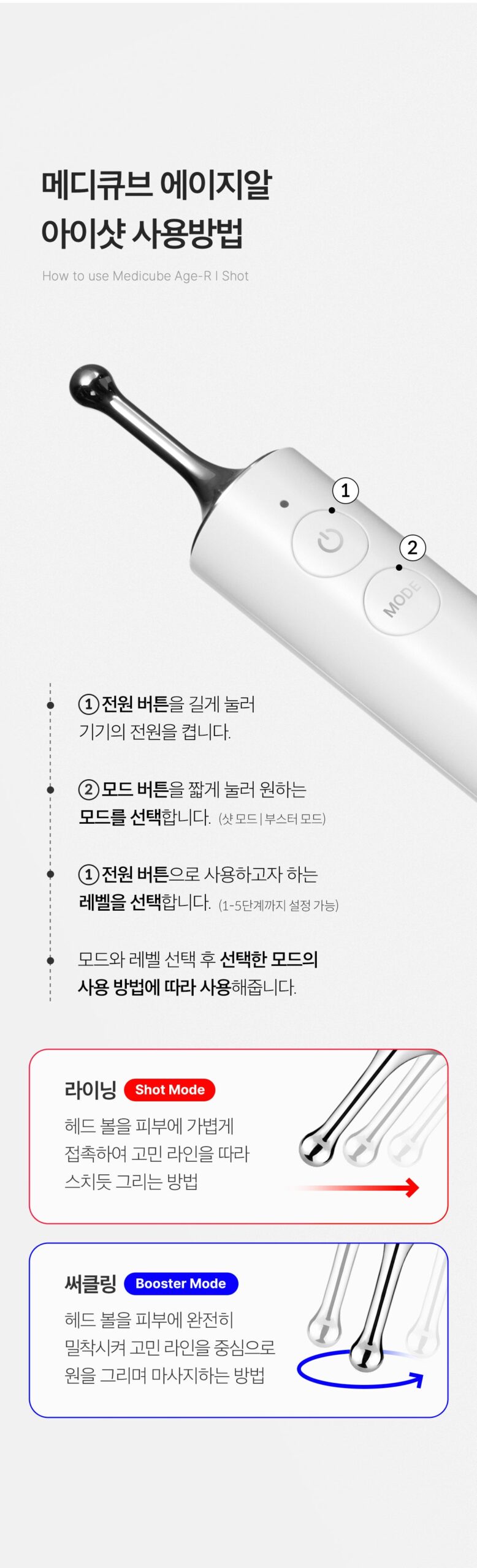 • Ergonomic and Safe Design: AGE-R I Shot is ergonomically designed for safety and ease of use, including a hygienic head cover, precision ball-type head, and a lightweight design weighing only 120g—half the weight of a smartphone.