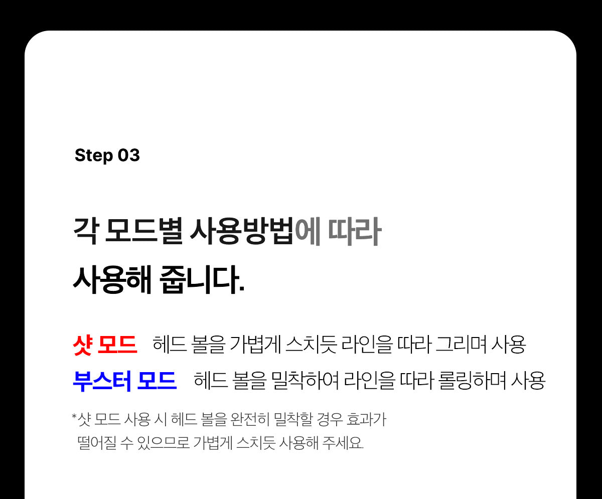 *When using shot mode, the effect may be reduced if the head ball is completely pressed against the head, so please use it with a light brushing motion.