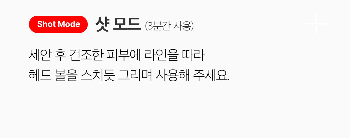 • Shot Mode (3 minutes): After cleansing and drying your skin, use the device along the lines with the head ball lightly touching the skin.
