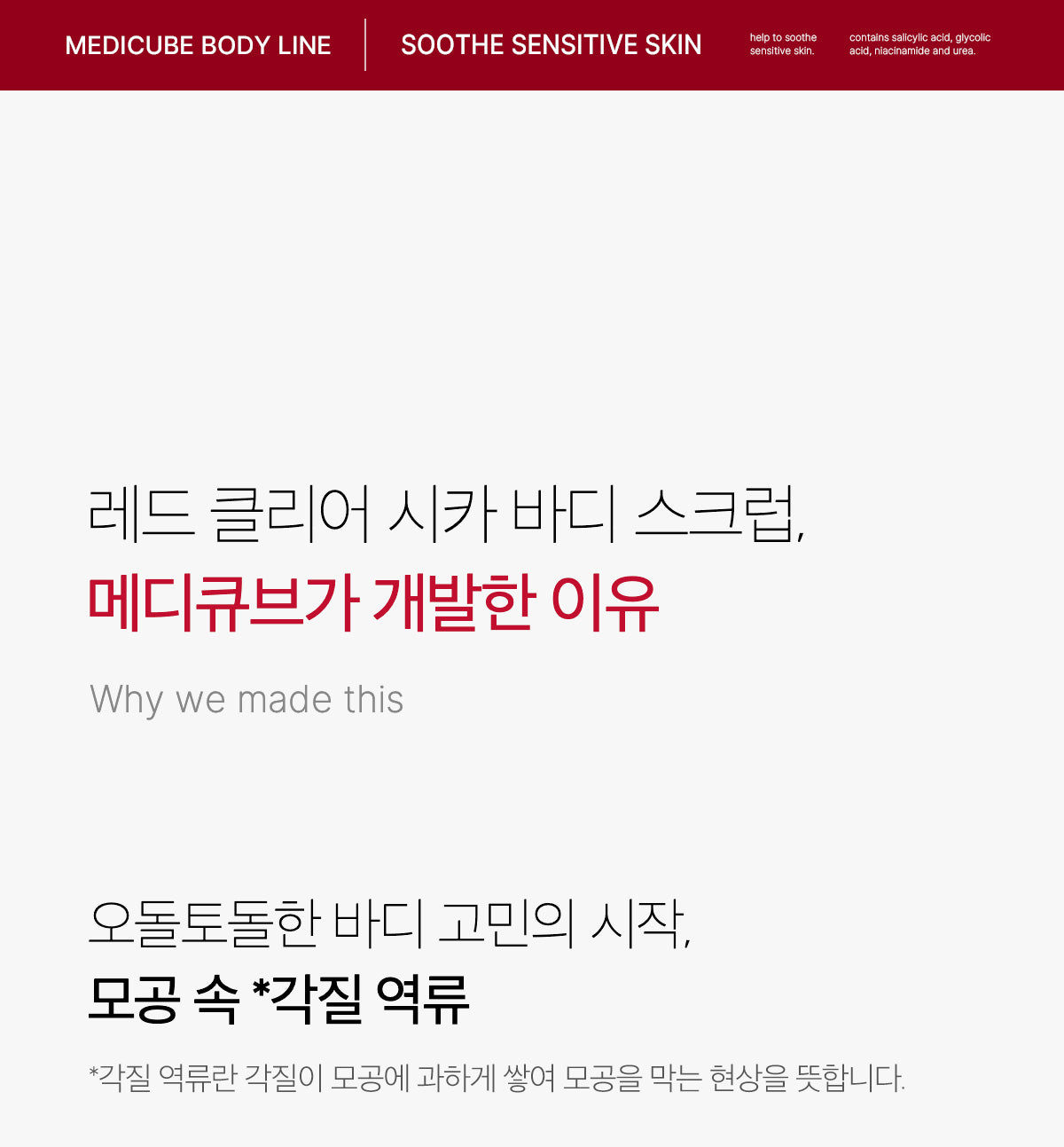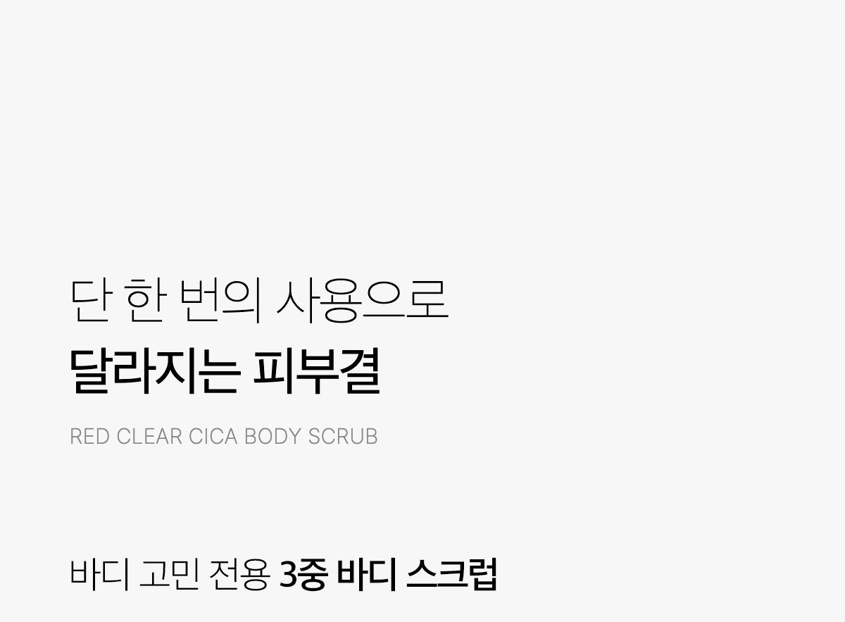 The Medicube Red Clear Cica Body Scrub is formulated with 100% natural ingredients. The color of the product may vary between batches, which is a natural occurrence and does not affect the product’s efficacy or safety.